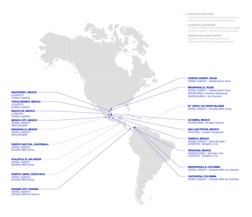 Nuestros servicios están respaldados por activos propios y de nuestros socios comerciales en las áreas de maniobras portuarias, almacenamiento, transporte terrestre, logística y agenciamiento de carga en las Américas.Durante casi medio siglo, el nombre Schaefer ha participado en innumerables embarques internacionales desde sus inicios como una reconocida empresa de maniobras portuarias en el sur de Texas. Con el tiempo, nuestro grupo se ha expandido hasta llegar a incluir todos los tipos de servicios de embarque para un amplio rango de clientes internacionales como líneas marítimas, comercializadores, fabricantes y consumidores finales. Nuestro equipo es multicultural, multilingüe y altamente profesional. Grupo Schaefer trabaja con pasión para maximizar la eficiencia en operaciones portuarias y lograr el fortalecimiento del desempeño en el transporte a nivel mundial. Gracias a nuestra experiencia en las Américas, hemos desarrollado un amplio portafolio de servicios que ponemos a su disposición.